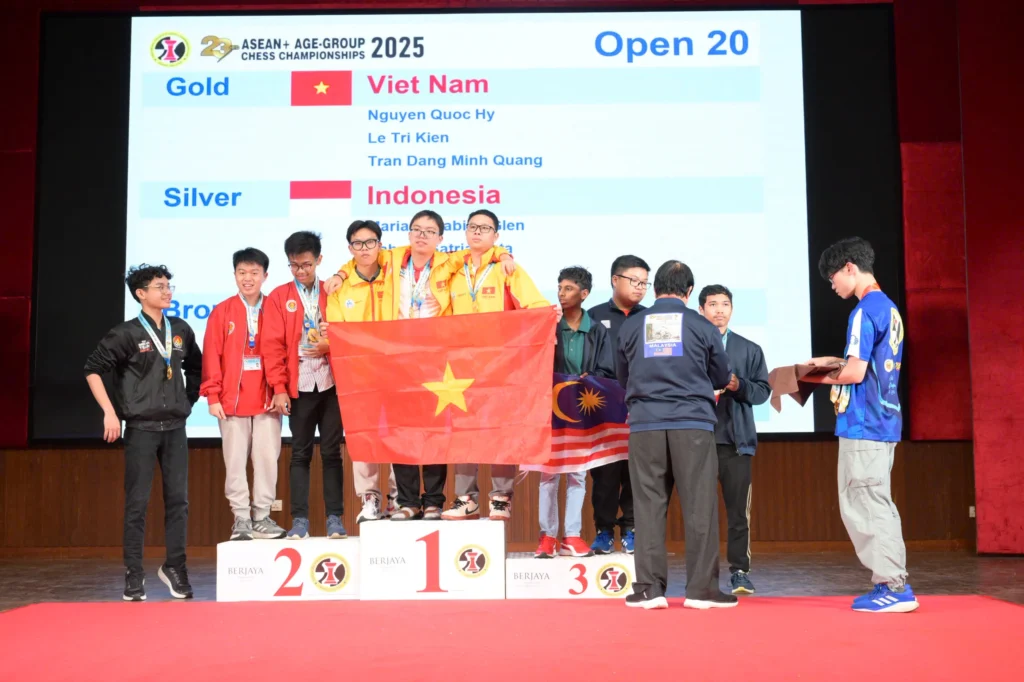 Sau 10 ngày tranh tài sôi nổi tại Malaysia, Giải vô địch cờ vua nhóm tuổi Đông Nam Á lần thứ 23 năm 2025 đã chính thức khép lại với thành tích ấn tượng của đội tuyển cờ vua trẻ Việt Nam. Với 72 huy chương vàng (HCV) ở cả ba nội dung cờ tiêu chuẩn, cờ nhanh và cờ chớp, đoàn Việt Nam xuất sắc đứng đầu toàn đoàn, khẳng định vị thế dẫn đầu trong khu vực.