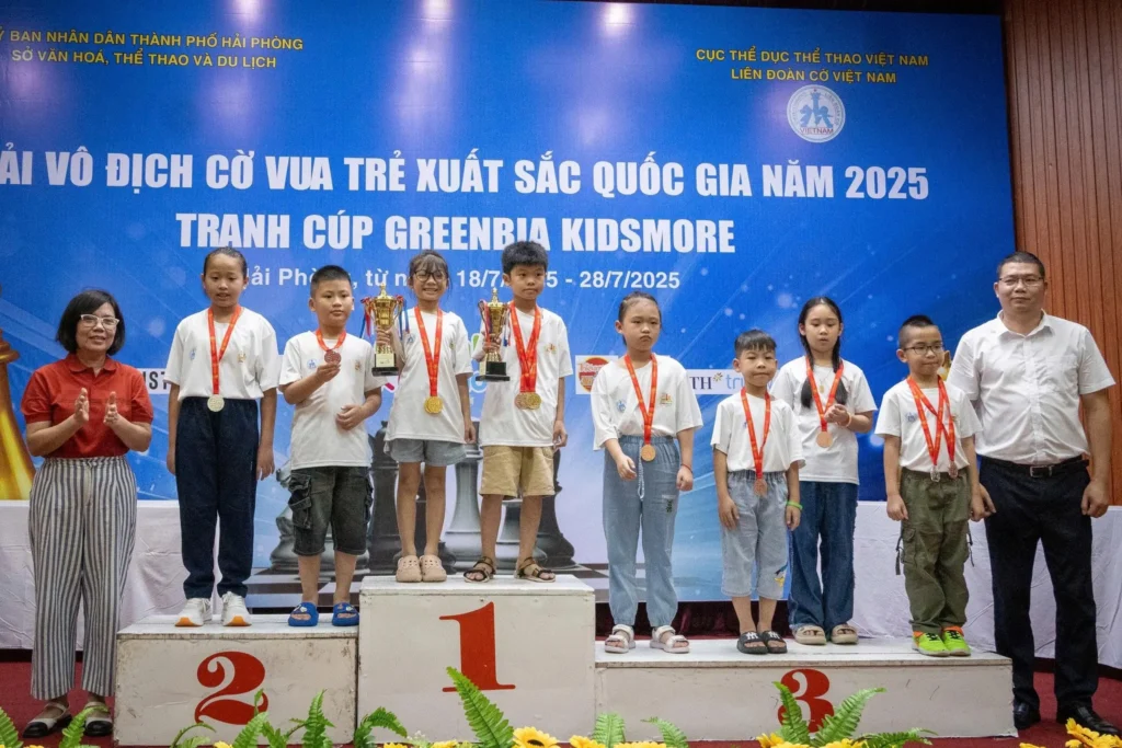 Sau gần một tuần tranh tài sôi động tại Hải Phòng, Giải cờ vua vô địch trẻ xuất sắc quốc gia 2025 tranh Cúp Greenbia Kidmore đã chính thức khép lại vào trưa 27/7. Giải đấu quy tụ 443 kỳ thủ từ 36 đơn vị trên cả nước, tranh 80 bộ huy chương ở 4 thể loại: cờ nhanh, cờ chớp, cờ tiêu chuẩn và cờ siêu chớp.